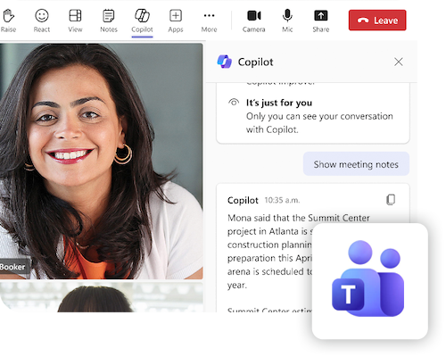 Inside Microsoft Teams, Copilot records and summarises discussions, tracks decisions, and highlights actions. Your meetings become shorter, smarter, and more productive.