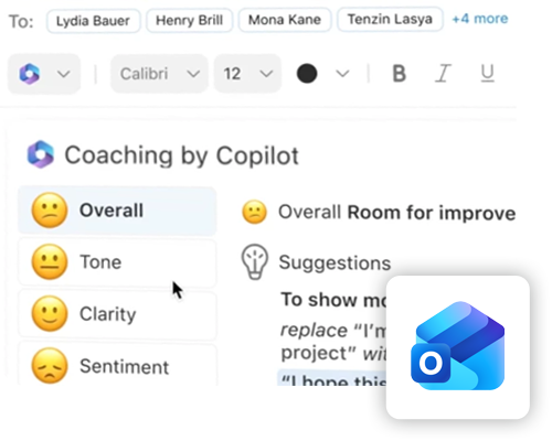 Copilot helps tidy inboxes, draft replies, and adjust tone automatically—so your business communication stays sharp, professional, and consistent.